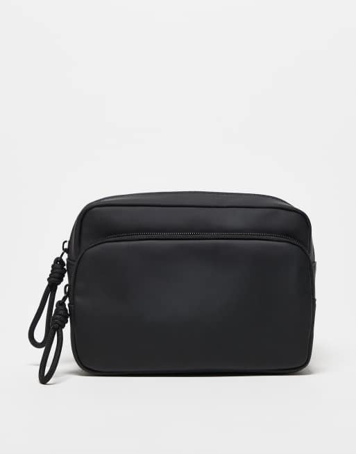 ASOS DESIGN - Rubberen toilettas met dubbel compartiment in zwart