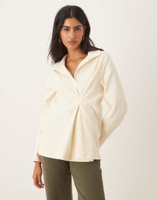 ASOS DESIGN - Rugbyshirt met opgestikte details in crème