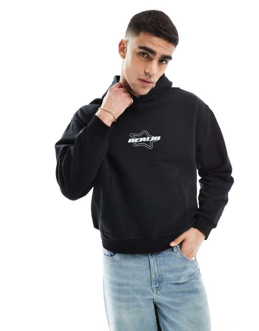 ASOS DESIGN - Ruime hoodie in zwart met Berlin-print