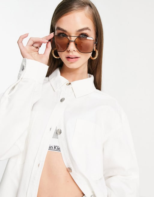 ASOS DESIGN - Ruimvallend denim overhemd en short in wit, combi-set