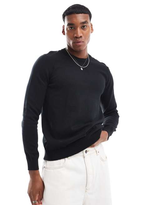 ASOS DESIGN - Ruimvallend gebreid T-shirt met lange mouwen en ronde hals in zwart