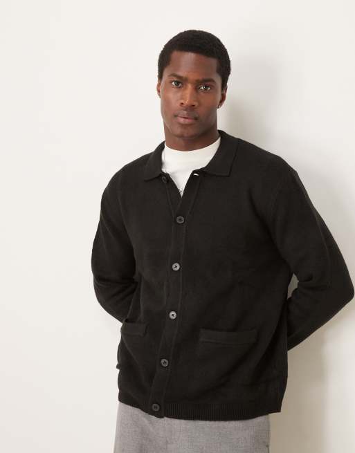 ASOS DESIGN - Ruimvallend gebreid vest met polokraag en opgestikte zakken in zwart