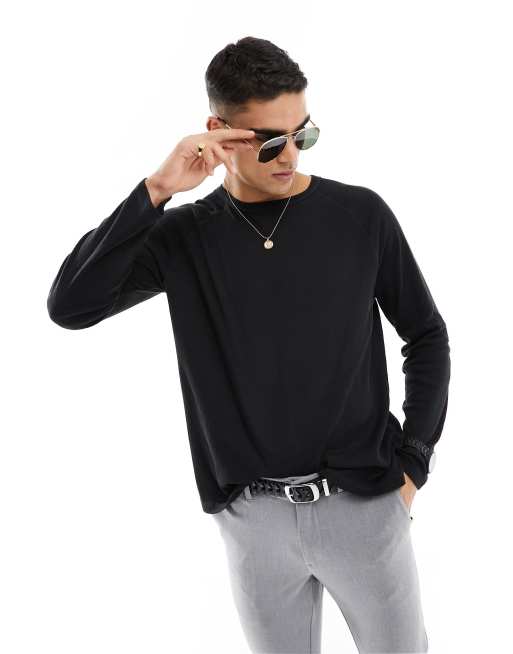 ASOS DESIGN - Ruimvallend geribbeld T-shirt met lange raglanmouwen in zwart