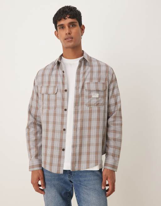 ASOS DESIGN - Ruimvallend geruit overhemd met workwear-badge in bruin