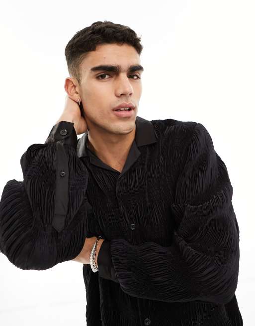 ASOS DESIGN - Ruimvallend getextureerd plissé overhemd met reverskraag in zwart