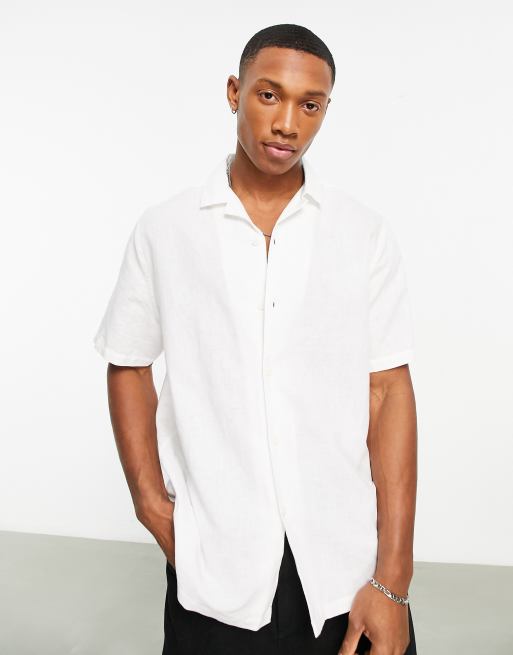 ASOS DESIGN - Ruimvallend linnen overhemd met reverskraag in wit