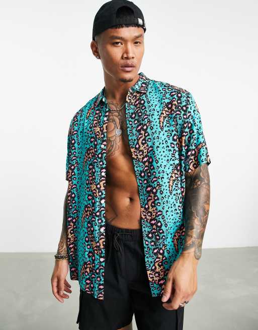 ASOS DESIGN - Ruimvallend overhemd met felgekleurde luipaardprint