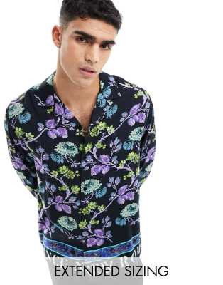 ASOS DESIGN - Ruimvallend overhemd met reverskraag en bloemen- en tekstprint in zwart