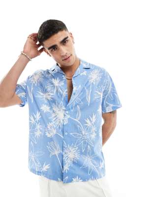 ASOS DESIGN - Ruimvallend overhemd met reverskraag en bloemenprint in blauw