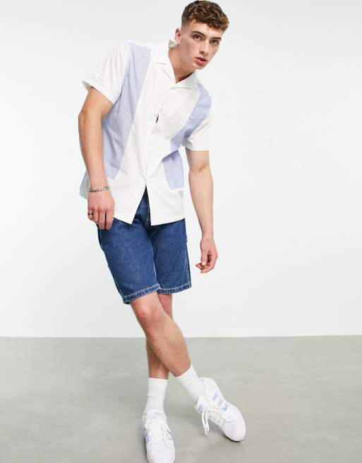 ASOS DESIGN - Ruimvallend overhemd met reverskraag en patchwork vlakken in wit