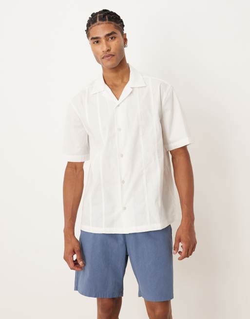 ASOS DESIGN - Ruimvallend overhemd met reverskraag en siernaden in wit