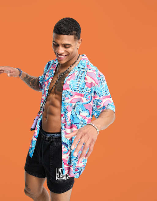 ASOS DESIGN - Ruimvallend overhemd met reverskraag in felgekleurde tijgerprint