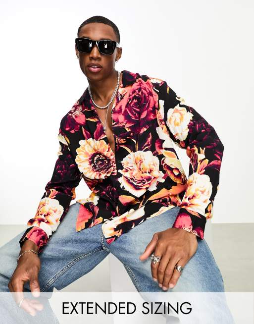 ASOS DESIGN - Ruimvallend overhemd met reverskraag in fotografische bloemenprint