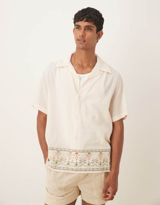 ASOS DESIGN - Ruimvallend overhemd met textuur en print in beige