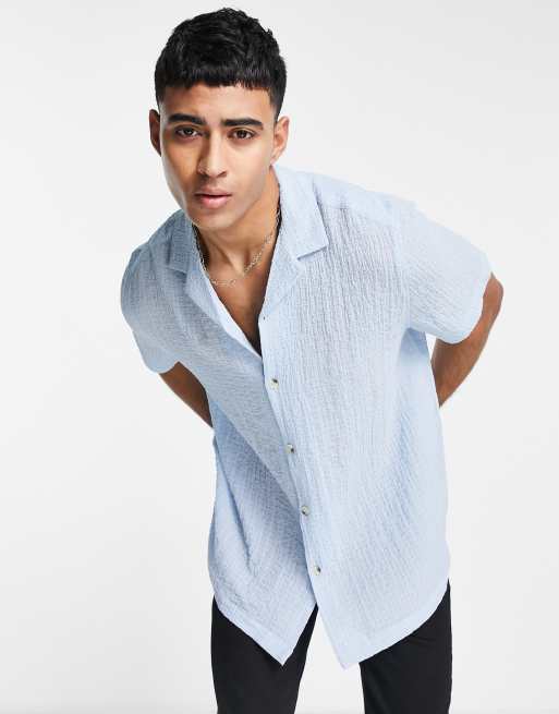 ASOS DESIGN - Ruimvallend overhemd van lichtgewicht kreukstof in lichtblauw - LBLUE