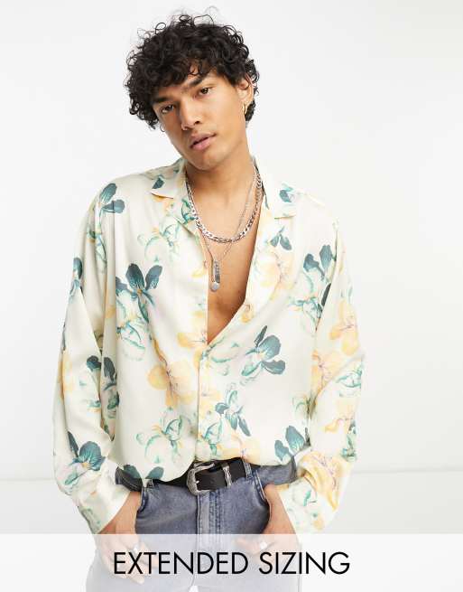 ASOS DESIGN - Ruimvallend overhemd van satijn met reverskraag en all-over bloemenprint in wit