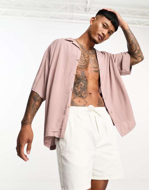 ASOS DESIGN - Ruimvallend overhemd van viscose in vaal roze