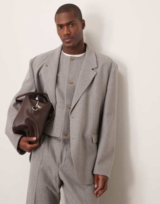 ASOS DESIGN - Ruimvallend oversized colbert van vilt in lichtgrijs