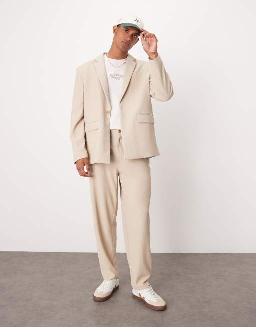ASOS DESIGN - Ruimvallend pak met geribbelde textuur in stone