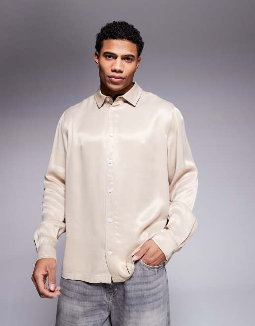 ASOS DESIGN - Ruimvallend recht satijnen overhemd in beige