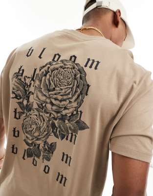 ASOS DESIGN - Ruimvallend T-shirt in beige met gotische rozenprint op de achterkant