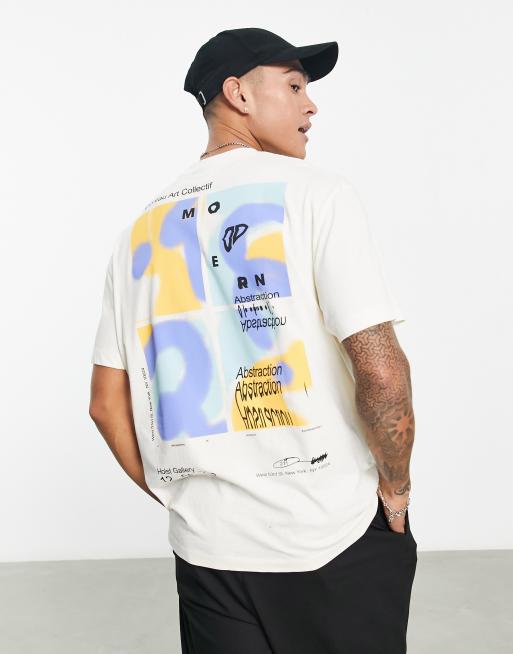 ASOS DESIGN - Ruimvallend T-shirt in beige met grafische print op de achterkant