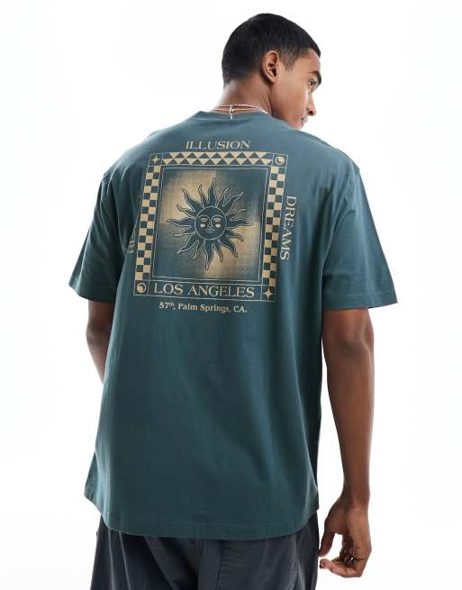ASOS DESIGN - Ruimvallend T-shirt met hemelse print op de achterkant in oudblauw
