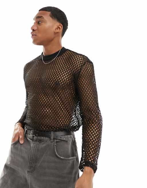 ASOS DESIGN - Ruimvallend T-shirt met lange mouwen van open mesh in zwart