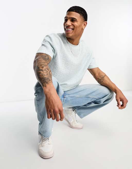ASOS DESIGN - Ruimvallend T-shirt met textuur in lichtblauw
