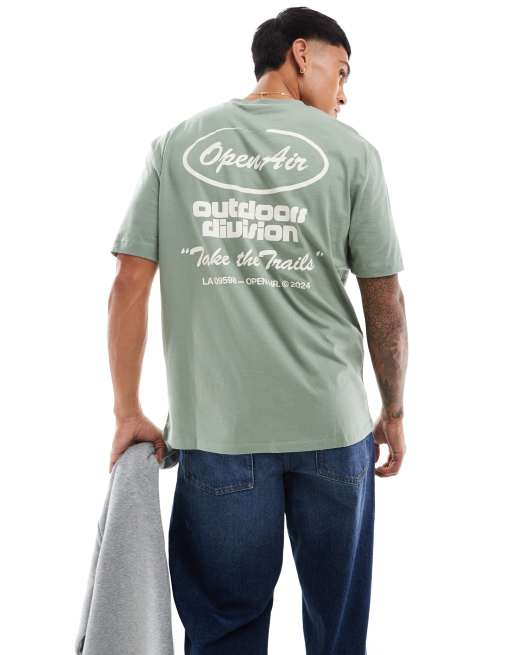 ASOS DESIGN - Ruimvallend T-shirts met tekstprint in kaki