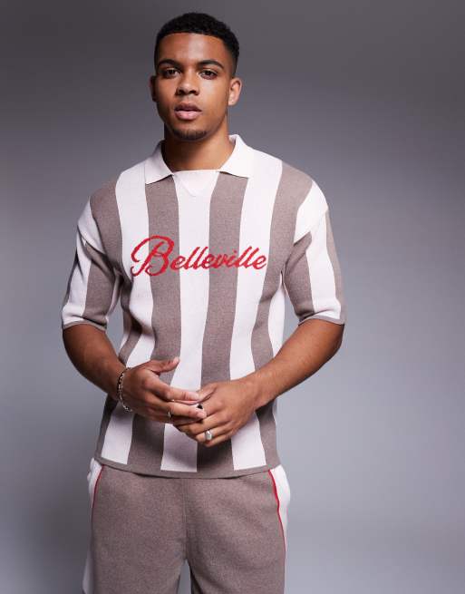 ASOS DESIGN - Ruimvallende gebreide polo met Belleville-print in stone, deel van co-ord set