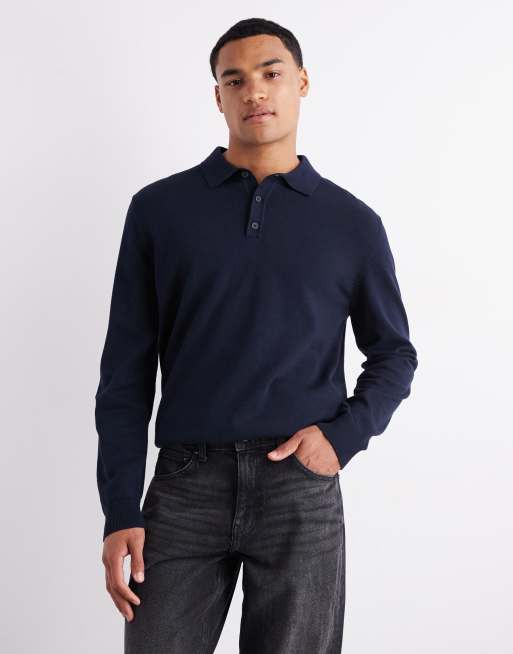 ASOS DESIGN - Ruimvallende gebreide polo met lange mouwen in marineblauw