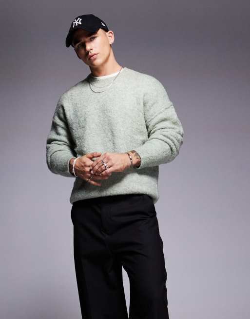 ASOS DESIGN - Ruimvallende gebreide trui in saliegroen
