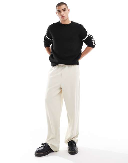 ASOS DESIGN - Ruimvallende gebreide trui met contrasterende naden in zwart