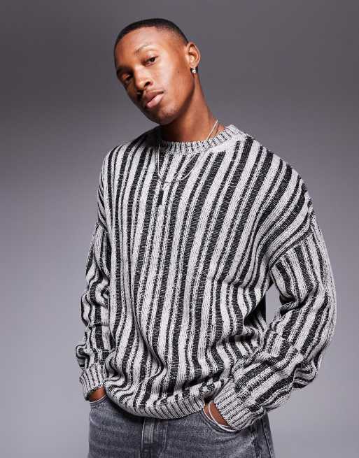 ASOS DESIGN - Ruimvallende geribbelde gebreide trui met strepen in grijs