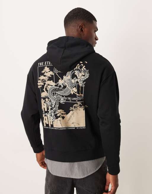 ASOS DESIGN - Ruimvallende hoodie met drakenprint op de achterkant in zwart
