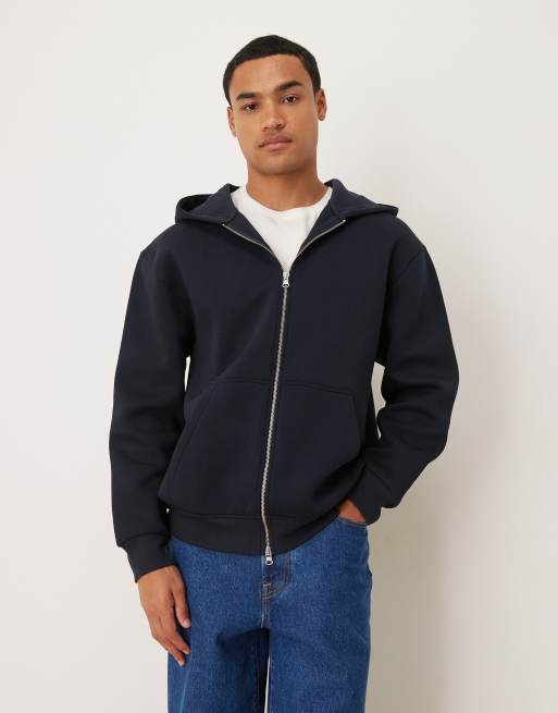 ASOS DESIGN - Ruimvallende hoodie van zware stof in scubastijl met rits in marineblauw