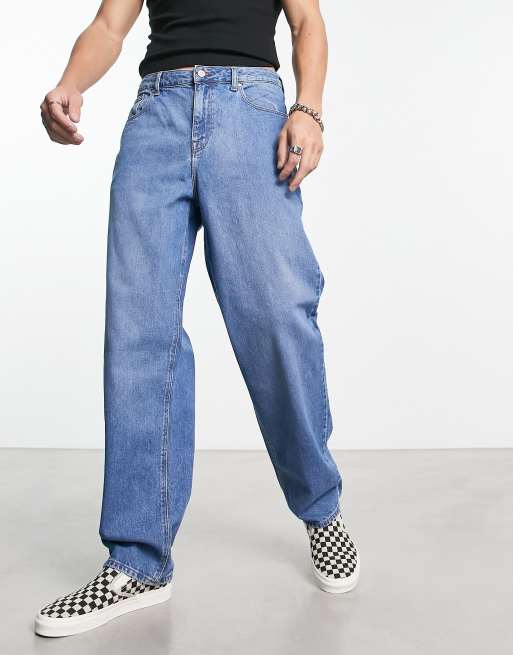 ASOS DESIGN - Ruimvallende jeans met middenblauwe wasing