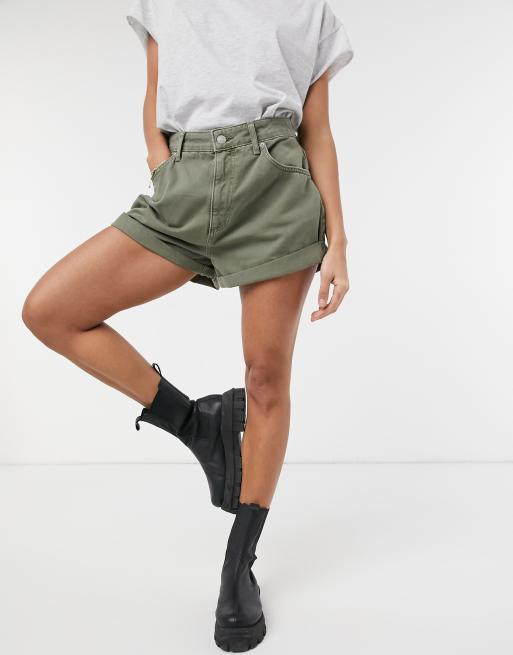 ASOS DESIGN - Ruimvallende Mom short met wassing in kaki