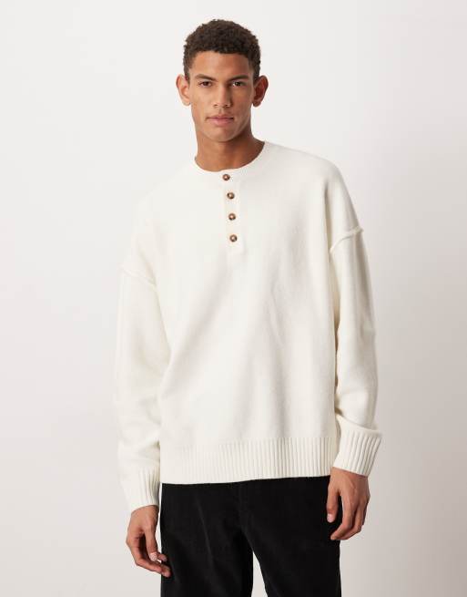 ASOS DESIGN - Ruimvallende pluizige gebreide henley trui in ecru