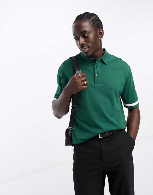 ASOS DESIGN - Ruimvallende polo met gekleurde randen in kaki