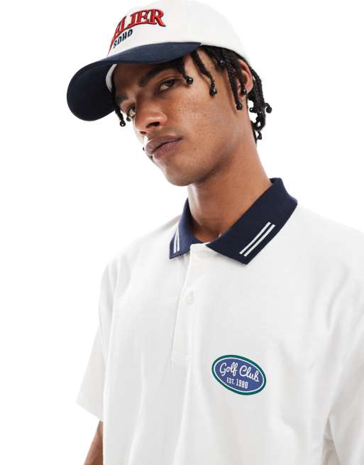ASOS DESIGN - Ruimvallende polo met golfprint op de voorkant in wit