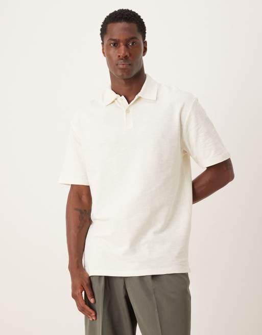 ASOS DESIGN - Ruimvallende polo van zware stof met textuur in crème