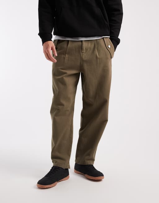 ASOS DESIGN - Ruimvallende toelopende broek met zakdetail in kaki