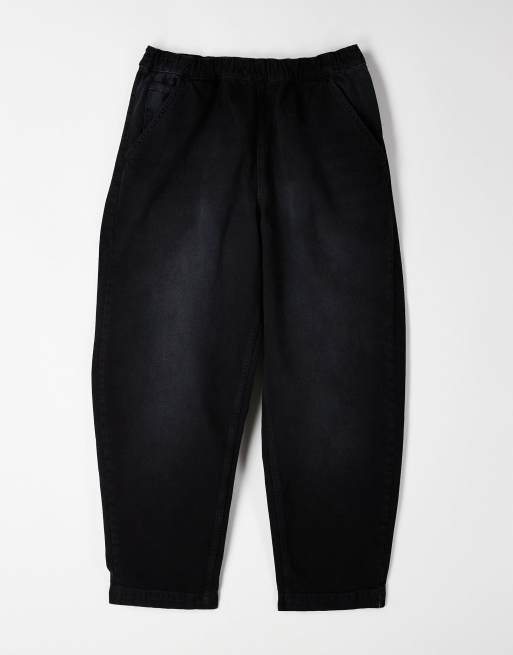 ASOS DESIGN - Ruimvallende toelopende elastische broek met trekkoord in zwarte met wassing