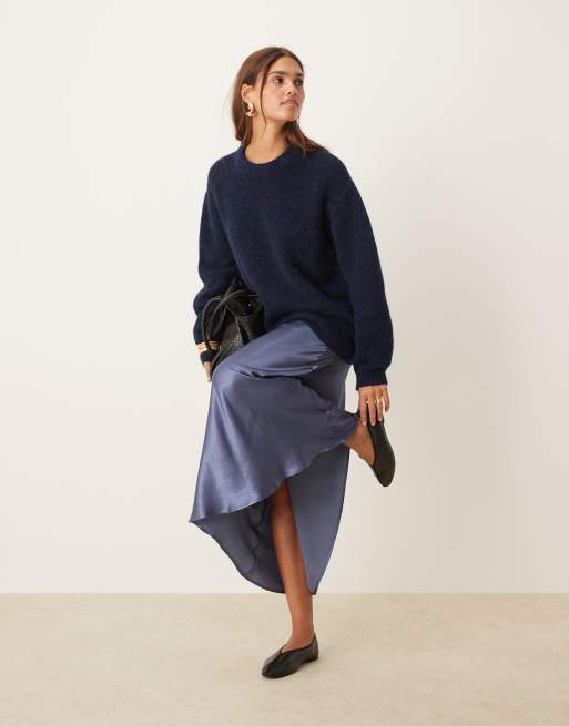 ASOS DESIGN - Ruimvallende trui met volumineuze mouwen van alpaca wolmix in marineblauw