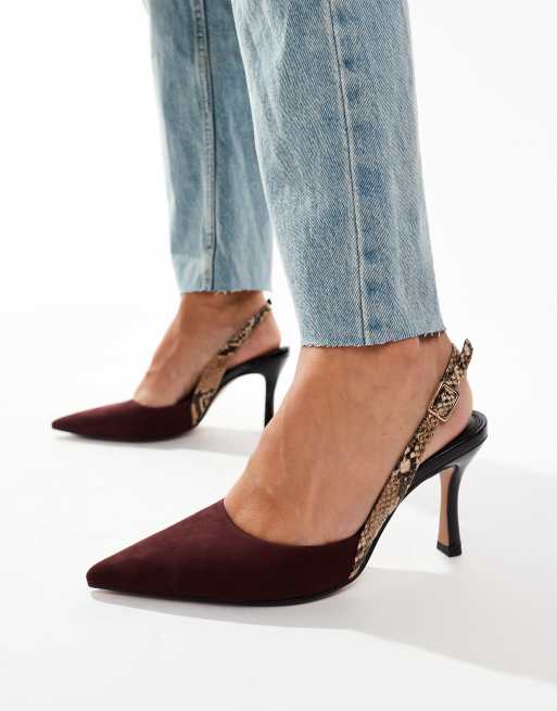 ASOS DESIGN - Samber - Stiletto-hakken met hielbandje in mix van bordeauxrood en slangenprint
