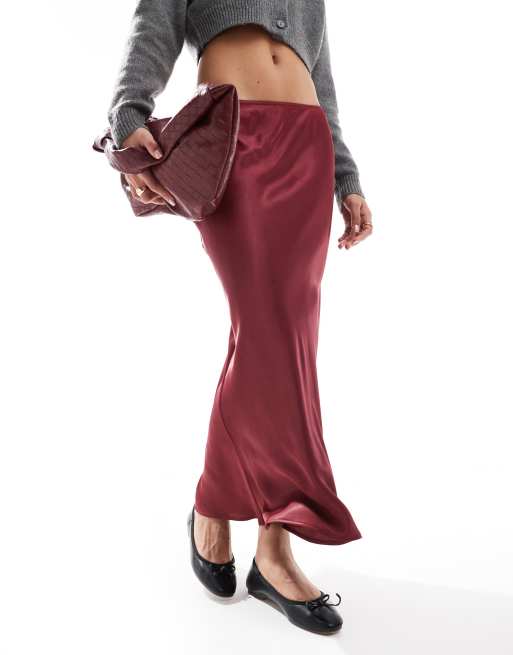 ASOS DESIGN - Satijnen midi rok in bordeauxrood