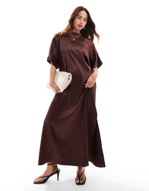ASOS DESIGN - Satijnen midi T-shirt jurk in bruin