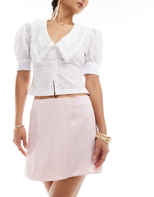 ASOS DESIGN - Satijnen mini wikkelrok in roze